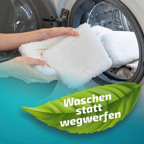 The dust mop cover can be washed up to 100 times at 40°C. Then it's ready for use again.