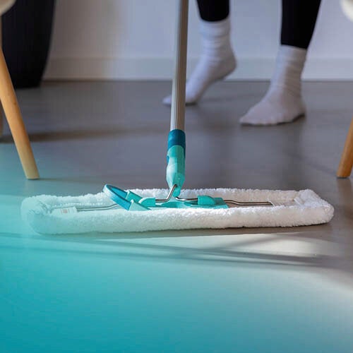Wash instead of throwing away – a real advantage for floor cleaning too. The SUPERDUSTER Floor M duster head for Leifheit floor wipers can be machine-washed up to 100 times at 40°C. This not only saves money, but also reduces unnecessary waste. For an even longer service life of the replacement cover, we recommend using a laundry mesh bag. After washing, the cover is completely clean again and ready for immediate use with its impressive powerful cleaning performance: Dust, hair and allergens are reliably absorbed and safely trapped in the fibres. The all-round duster head ensures that skirting boards and edging are also cleaned at the same time. Made of 100% microfibre, the cover is suitable for all hard floors such as tiles, laminate or parquet. The practical pocket attachment enables quick and easy assembly: Simply slide the base plate into the pockets and it's ready to use. The SUPERDUSTER Floor M duster head is compatible with all Leifheit size M mops – so the SUPERDUSTER Floor, CLEAN TWIST M Ergo, POWER CLEAN, Combi Clean and Picobello M.- The floor wiper duster head is durable and can be washed up to 100 times at 40°C – ready for use again immediately after washing with its impressive performance