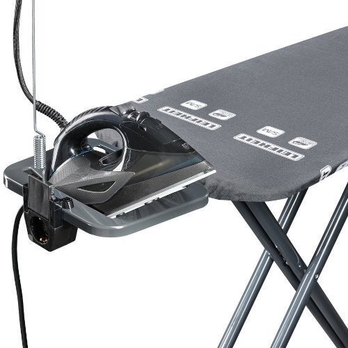 - The iron can be placed securely on the fixed iron rest with cable holder and power socket